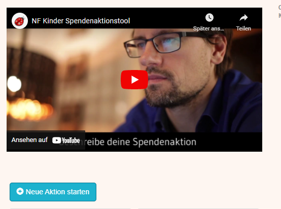 Auch der Verein NF Kinder erklärt in einem kurzen Video, wie man eine Spendenaktion anlegt.