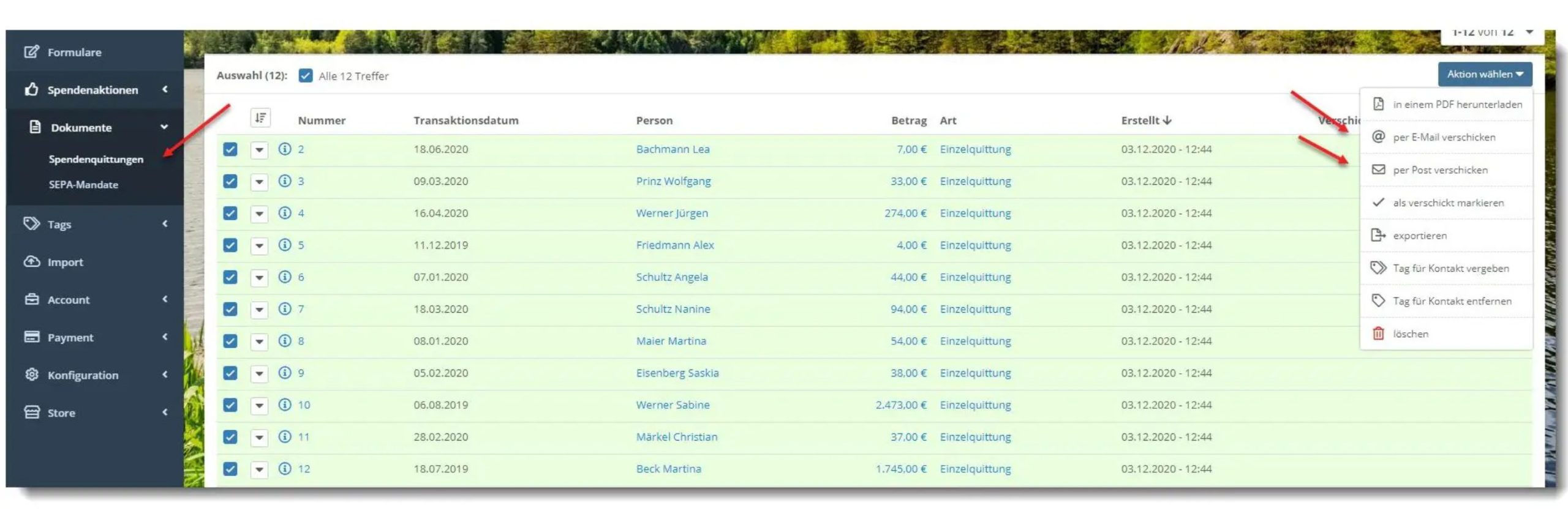 6. Spendenbescheinigungen per Post versenden